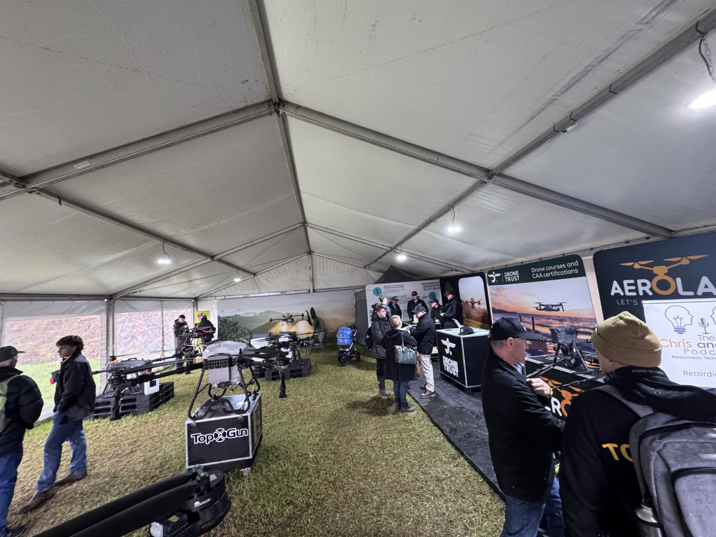 Yeah. And just to expand on that, for listeners in the past, you’ve always seen a drone sitting on a box or a stand or whatever, and you. And maybe a TV showing it flying in the background. This time they’ve got a fenced off area out here with a large drone with a bit of a tether to it that’s flying back and forth across this field. Spraying, which, yeah, it’s 100% different seeing it in action than it is seeing it on a stand idle, you know, so that’s cool. Now I’ve got a. What has been the biggest challenge you’ve had in putting all this together or getting. What have you had trouble getting people to understand about drones?