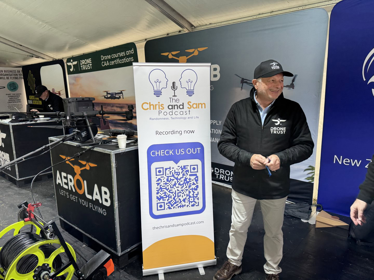 So right now we’re in the drone zone and Sam and I have been coming here for a probably seven years, I think, now, and the drones are becoming bigger and bigger thing every year. So I’m with Peter and Peter’s going to tell me a little bit about the drone trust and what they’re doing with Drone Zone and how things are progressing. So, Peter.
